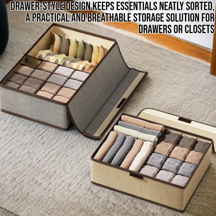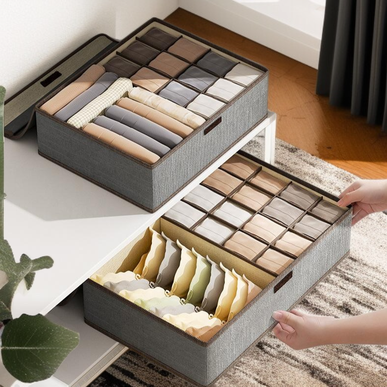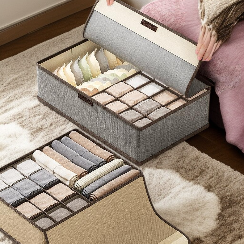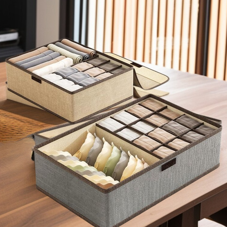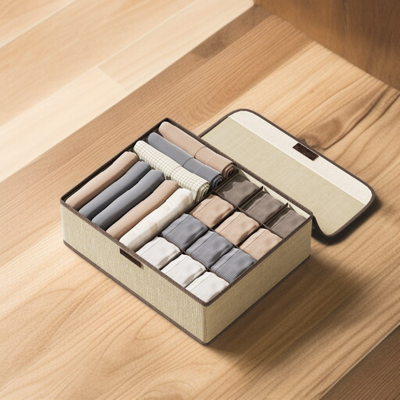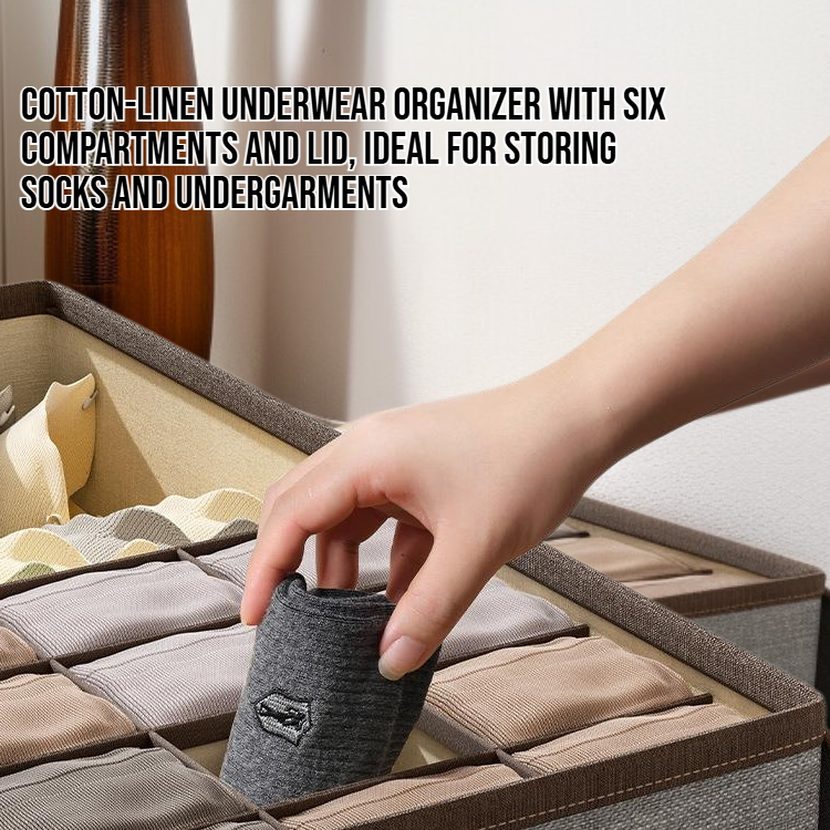 Organize underwear efficiently with a cotton and linen covered storage box. Durable, breathable material keeps items fresh. Multiple compartments for easy sorting. Fits drawers, closets, and shelves.