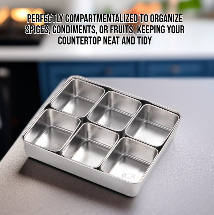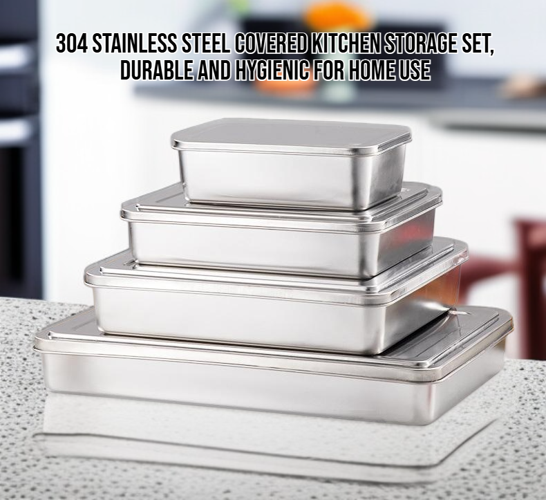 Durable 304 covered stainless steel compartment storage box, rust-resistant, easy to clean, multi-compartment design, suitable for organizing food or small items, secure lid for freshness.