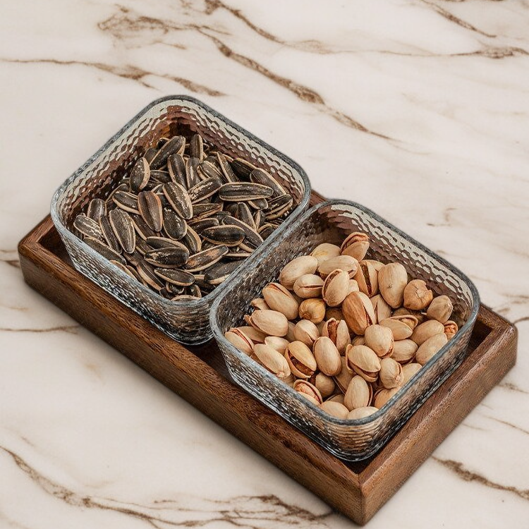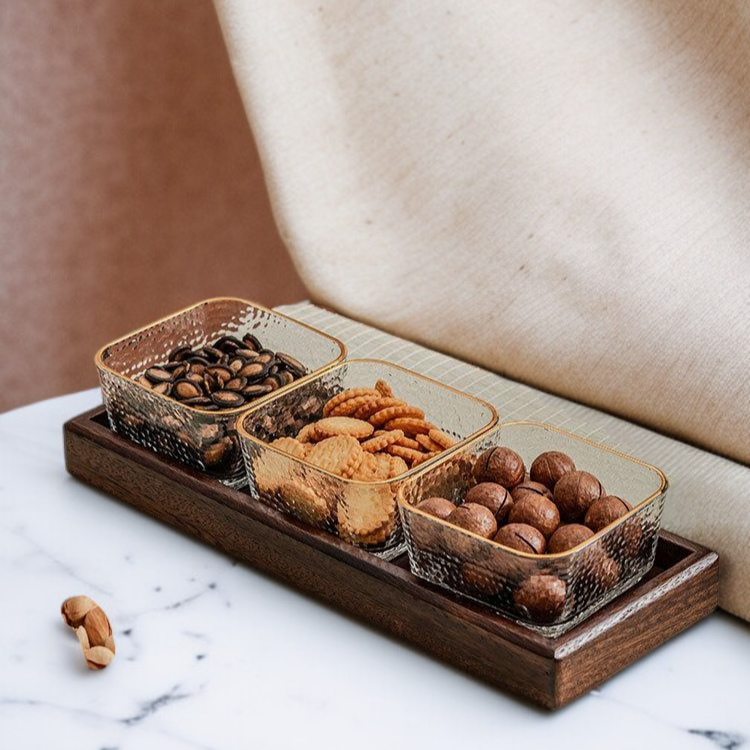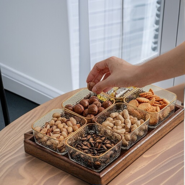 Color: Two-compartment glass bowl hammered texture transparent & walnut wood, Two-compartment glass bowl hammered texture transparent & walnut wood & lid, Three-compartment glass bowl hammered texture transparent & walnut wood, Three-compartment glass bowl hammered texture transparent & walnut wood & lid, Four-compartment glass bowl hammered texture transparent & walnut wood, Four-compartment glass bowl hammered texture transparent & walnut wood & lid, Six-compartment glass bowl hammered texture transparent & walnut wood, Six-compartment glass bowl hammered texture transparent & walnut wood & lid, Two-compartment glass bowl hammered texture gold rim & walnut wood, Two-compartment glass bowl hammered texture gold rim & walnut wood & lid, Three-compartment glass bowl hammered texture gold rim & walnut wood, Three-compartment glass bowl hammered texture gold rim & walnut wood & lid, Four-compartment glass bowl hammered texture gold rim & walnut wood, Four-compartment glass bowl hammered texture gold rim & walnut wood & lid, Six-compartment glass bowl hammered texture gold rim & walnut wood, Six-compartment glass bowl hammered texture gold rim & walnut wood & lid